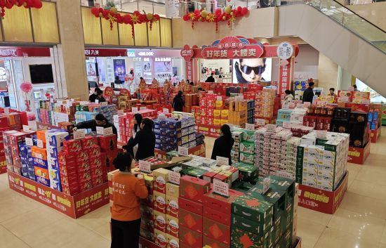 同日,延吉百貨大樓節(jié)日裝飾喜慶亮眼,新春氛圍感拉滿。一樓大廳內(nèi),特意設(shè)置了年貨專區(qū),堅(jiān)果、糖果、海產(chǎn)品、酒水禮盒整齊陳列,延邊特色產(chǎn)品、全國名優(yōu)好物應(yīng)有盡有,從家庭自用到走親訪友的禮盒套裝,再到日常餐桌的生鮮食材,品類豐富、一應(yīng)俱全。“現(xiàn)在都提倡健康生活,多買點(diǎn)水果、海產(chǎn)品,老人孩子都愛吃,禮盒送禮也體面,趁著優(yōu)惠多買點(diǎn)!笔忻駝⑴亢图胰苏奶暨x著干果禮盒與生鮮商品。