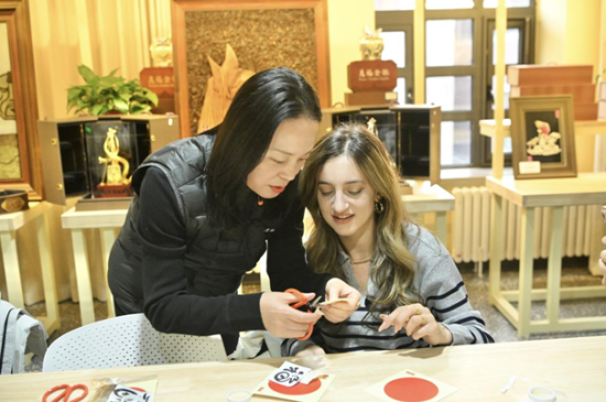 美國自媒體博主于中美按照吉林省查干湖魚皮制作技藝傳承人徐毳的指導,一步步剪完了魚皮畫,她舉著自己的作品說:“我是第一次了解魚皮畫,沒想到魚皮能做成這么精美、這么美麗的藝術品!