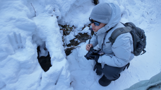 深入雪谷腹地,采風團一行涉入尚未冰封的溪水,手扶古木,沿溪而行。“這種體驗太美好了,在滿是積雪的森林深處行進,感覺太奇妙了!泵绹W(wǎng)絡(luò)博主于中美驚嘆道。