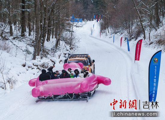 這邊速度與激情正酣,半山腰處,另一番冰雪趣玩早已攢足了人氣。“1314雪地叢林漂流”起點(diǎn)前,游客們自發(fā)將橡皮圈連成長(zhǎng)串,宛如雪地里靈動(dòng)穿梭的“貪吃蛇”。順著蜿蜒的天然冰道俯沖而下時(shí),清脆的尖叫聲、爽朗的歡笑聲,伴著飛濺的雪沫一同在林間回蕩。終點(diǎn)處,游客陳先生和女友剛完成這場(chǎng)寓意“一生一世”的浪漫漂流,仍覺意猶未盡:“我們遠(yuǎn)道而來(lái),就是為了體驗(yàn)這份林海雪原里的獨(dú)特浪漫。這里的雪,既有北國(guó)風(fēng)光的壯闊,更有藏不住的趣味與溫度!