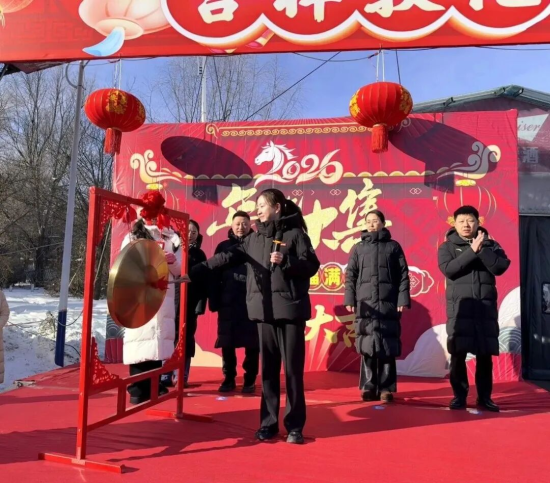 小寒大寒又一年,煙火滿巷年味濃!1月20日,敦化市北山煙火巷年味大集正式啟幕,市政府副市長張晗竹出席活動并鳴鑼開市,清脆有力的鑼聲正式拉開新春年貨采購序幕。市文化廣播電視和旅游局班子成員、北山煙火巷年味大集負責人張金海等領導嘉賓出席活動,與市民和游客共同見證這一喜慶時刻。