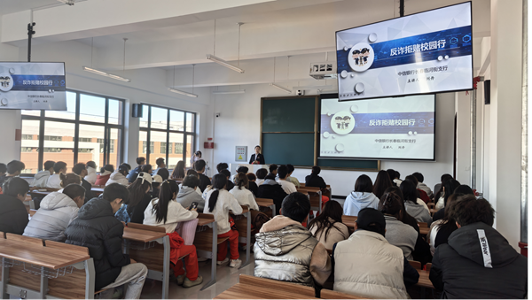 活動現(xiàn)場,臨河街支行的工作人員結合高校校園詐騙的高發(fā)特點,以通俗易懂的語言為師生們帶來了一場干貨十足的反詐宣講。宣講環(huán)節(jié)中,工作人員首先從“什么是電信網(wǎng)絡詐騙”切入,系統(tǒng)講解了電信網(wǎng)絡詐騙的定義、常見類型及隱蔽性、迷惑性特點,讓師生們對這類違法犯罪行為建立起清晰認知。隨后,通過“以案說詐”的形式,工作人員選取了近年來高發(fā)的校園貸、刷單返利、冒充老師同學借錢、虛假購物退款等典型詐騙案例,深入剖析了詐騙分子的作案手法、話術陷阱以及受害者的受騙心理,用真實案例敲響安全警鐘,讓師生們直觀感受詐騙的危害性。