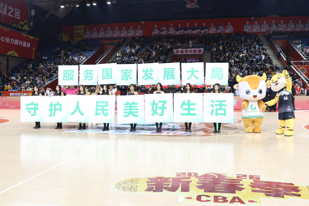 賽場中央,中國人壽專屬展示環(huán)節(jié)成為節(jié)間亮點。主持人熱情開場:“歡迎來到由CBA聯(lián)賽官方主贊助商中國人壽帶來的互動環(huán)節(jié)。中國人壽為CBA球員助力打call!”伴隨著動感的音樂,16名啦啦隊員率先登場,在中圈帶來活力舞蹈表演,表演結(jié)束后,隊員們每人舉起一張展示牌,共同拼組出“服務(wù)國家發(fā)展大局,守護人民美好生活”的企業(yè)使命,東北虎俱樂部吉祥物與中國人壽壽險牛犇犇吉祥物攜手登場,在場內(nèi)舞動,萌趣的姿態(tài)與整齊的展示相映成趣,瞬間點燃現(xiàn)場的氛圍。表演落幕,“一個國壽,一生守護!感謝中國人壽為我們帶來的精彩時刻,中國人壽,相知多年,值得托付,要投就投中國人壽!”的話語響徹賽場,將品牌的守護理念傳遞給現(xiàn)場的每一位觀眾。