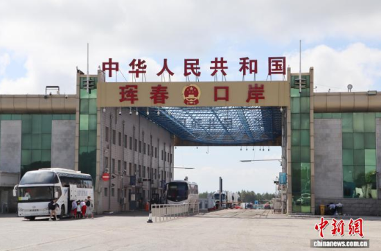 7月19日,吉林琿春,運輸?shù)弁跣返目ㄜ嚺抨犎腙P(guān)。 中新社記者 蔣文月 攝