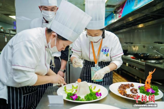 當(dāng)天上午,多支代表隊(duì)在后廚忙碌,操作臺(tái)上,參賽廚師依照藥膳指導(dǎo)師開具的方子,將精選的人參等藥材進(jìn)行預(yù)處理,再與母雞、松花江魚等主料一同入鍋!斑@道湯適合體虛者,我們控制了人參用量,確保其口味和養(yǎng)生功效!币晃贿x手介紹。