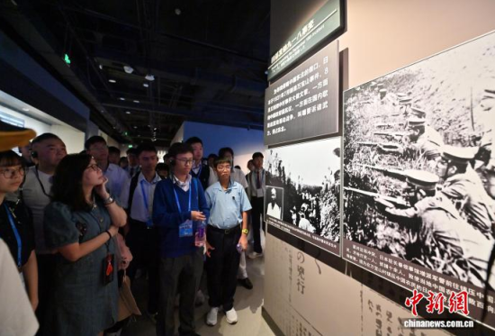 8月11日,吉林長春,香港青年參觀東北淪陷史陳列館。為紀(jì)念中國人民抗日戰(zhàn)爭暨世界反法西斯戰(zhàn)爭勝利80周年,數(shù)十名香港青年走進(jìn)東北淪陷史陳列館,通過館內(nèi)大量珍貴文物和歷史資料,深入了解東北人民在抗戰(zhàn)時期所經(jīng)歷的苦難歲月以及他們英勇抗?fàn)幍氖论E。中新社記者 張瑤 攝