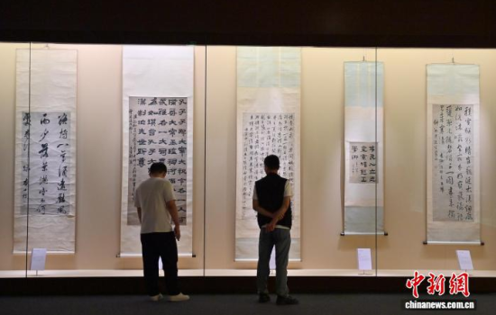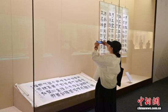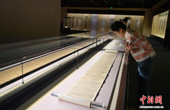 9月10日,參觀者在位于吉林省長春市的吉林省博物院參觀董其昌的《戲鴻堂雜書冊》。近日,“吉林省博物院藏明清書法精品展”在長春開展,此次展覽遴選該院所藏明清書法精品五十余件,均為珍貴文物。展覽不僅系統(tǒng)梳理了明清兩代書法藝術(shù)的發(fā)展脈絡(luò),更是對中華優(yōu)秀傳統(tǒng)文化的傳承與弘揚。中新社記者 張瑤 攝