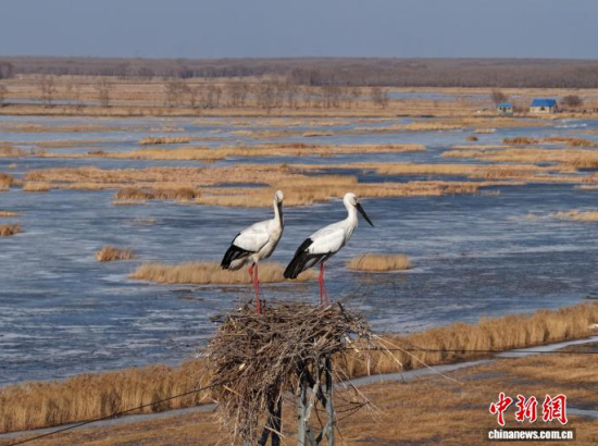 在“中國白鶴之鄉(xiāng)”鎮(zhèn)賚縣,莫莫格濕地已迎來遷徙先頭部隊。目前,3000余只大雁、野鴨在水面游弋,300余只灰鶴或低空翱翔、或在灘涂覓食,20余只東方白鸛重返傳統(tǒng)棲息地,銜枝修巢,為繁殖季做著準(zhǔn)備。