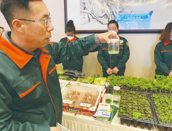 優(yōu)質(zhì)草莓苗走進(jìn)展會(huì),受到很多消費(fèi)者青睞。 趙濱 攝