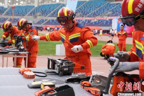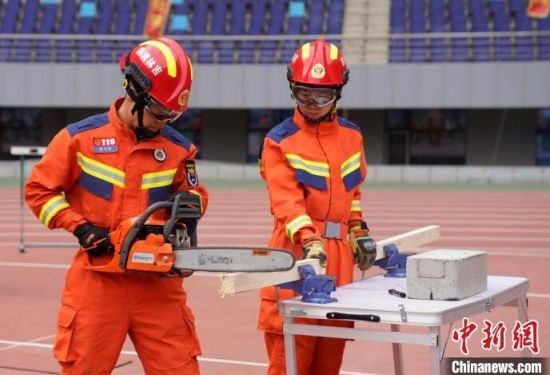 消防指戰(zhàn)員在進(jìn)行無(wú)齒鋸組裝!埇 攝