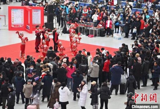 1月26日,在長春站候車大廳,長春站、沈陽鐵路公安局長春公安處等多個部門聯(lián)合為旅客帶來了系列精彩表演, 吸引大批過往旅客駐足觀看、參與。當天,2024年春運啟動。2024年春運自1月26日開始至3月5日結(jié)束,為期40天。春運期間,長春站預(yù)計發(fā)送旅客341萬人次,日均8.5萬人次。(完)