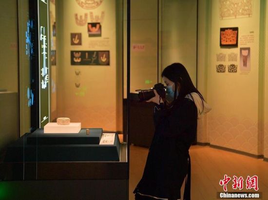 圖為市民在觀賞新石器時(shí)代良渚文化玉璧。