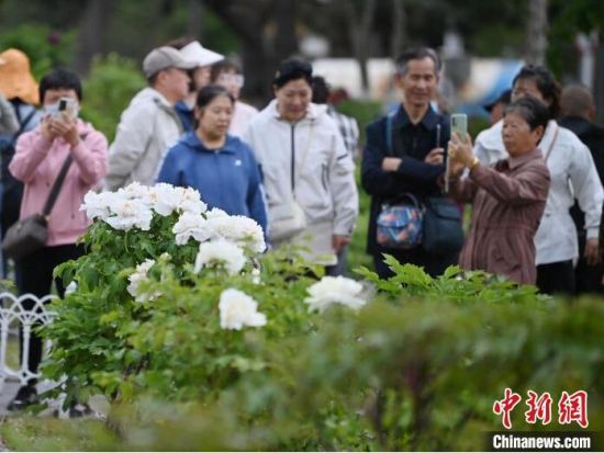 5月15日,長春牡丹園內(nèi)牡丹花盛開,吸引市民紛紛至此欣賞。(完)