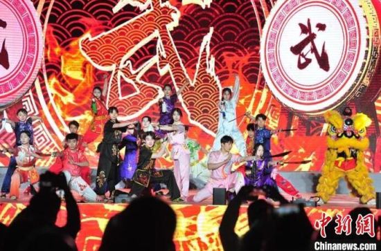 大學(xué)生在表演武術(shù)《爭(zhēng)春》。