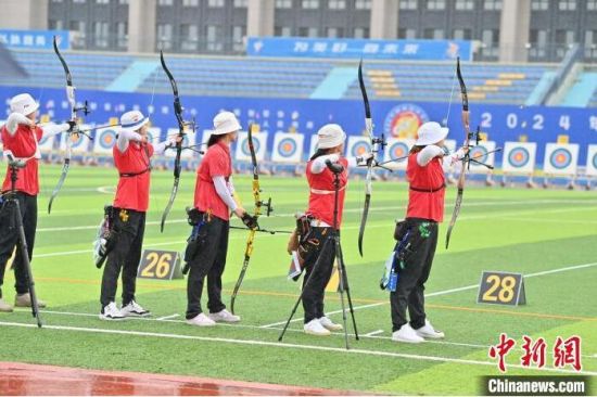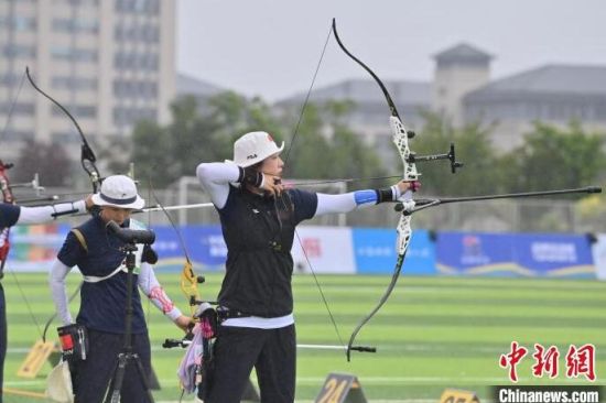 7月3日,吉林遼源,參賽選手參加女子個(gè)人70米輪賽。 當(dāng)天,2024年全國(guó)射箭巡回賽暨全國(guó)射箭分站賽第二站在雨中開(kāi)弓。來(lái)自全國(guó)各地的258名運(yùn)動(dòng)員在男子反曲弓個(gè)人、女子反曲弓個(gè)人、男子反曲弓團(tuán)體、女子反曲弓團(tuán)體、反曲弓混合團(tuán)體5個(gè)競(jìng)賽項(xiàng)目上一較高低。(中新社記者 張瑤 攝)