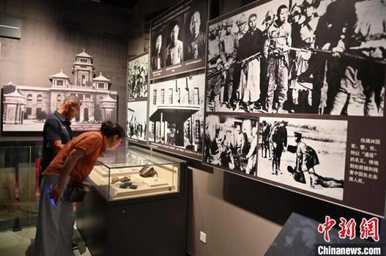 8月15日,吉林長春,民眾在偽滿皇宮博物院東北淪陷史陳列館參觀。當天,偽滿皇宮博物院舉辦紀念東北光復(fù)79周年特別活動,社會各界人士自發(fā)前往參加,重溫歷史、表達對先烈的追思之情。中新社記者 張瑤 攝