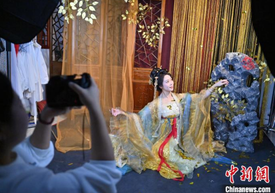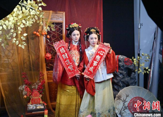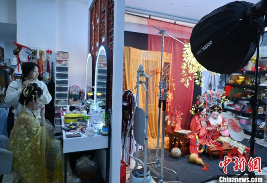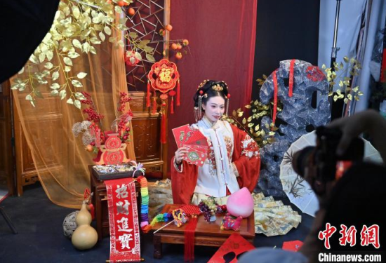 1月6日,吉林長(zhǎng)春,市民在拍攝漢服寫真。店家介紹,農(nóng)歷蛇年春節(jié)將至,漢服寫真成了顧客新需求,店家特推出百梅迎春、金蛇賀歲、招財(cái)進(jìn)寶等主題,深受市民喜愛。中新社記者 張瑤 攝