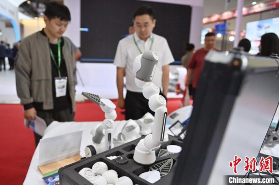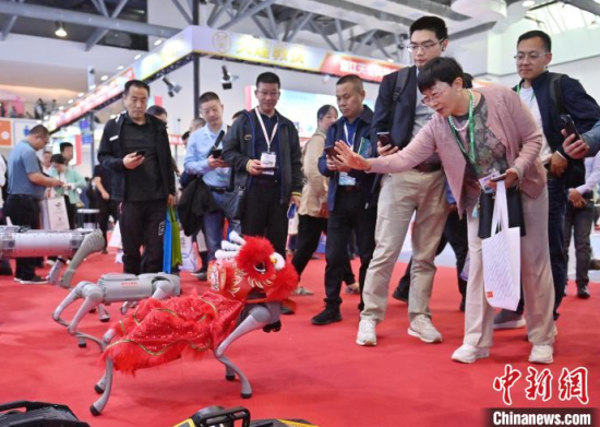 5月23日,第63屆高等教育博覽會(huì)(簡(jiǎn)稱(chēng)“高博會(huì)”)在長(zhǎng)春開(kāi)幕。本屆高博會(huì)由展覽展示與特色活動(dòng)兩部分組成。其中,展覽展示面積12萬(wàn)平方米,參展院校和企業(yè)6000余家。圖為高博會(huì)展覽現(xiàn)場(chǎng),智能人形機(jī)器人吸引參觀者。中新社記者 張瑤 攝
