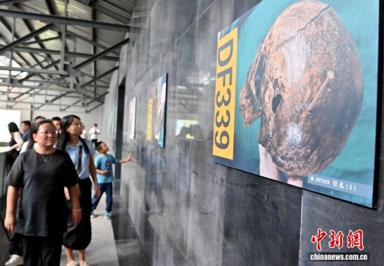8月7日,記者拍攝的東北淪陷時(shí)期遼源礦工墓陳列館的綜合陳列館——遼源礦工紀(jì)念館。該陳列館是日本侵華期間強(qiáng)占東北、掠奪資源、殘害中國(guó)礦工的重要罪證!熬乓话恕笔伦兒螅湛茉诖睡偪耖_采煤礦14年,導(dǎo)致8萬至10萬礦工慘死。如今,這片占地6萬平方米的遺址內(nèi),197具完整遺骸和20余具零散遺骨靜靜陳列,無聲控訴著侵略者的罪行。中新社記者 張瑤 攝