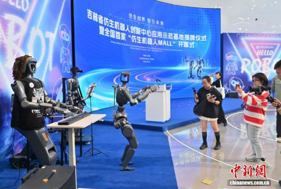 9月30日,吉林長(zhǎng)春,參觀者觀看科技文旅機(jī)器人。當(dāng)天,吉林省仿生機(jī)器人創(chuàng)新中心應(yīng)用示范基地于吉林省長(zhǎng)春市揭牌,全國(guó)首家“仿生機(jī)器人MALL”也在同期開(kāi)幕。該基地集展示、體驗(yàn)、科普、銷售等功能于一體,致力于打造沉浸式科技消費(fèi)新地標(biāo)。中新社記者 張瑤 攝