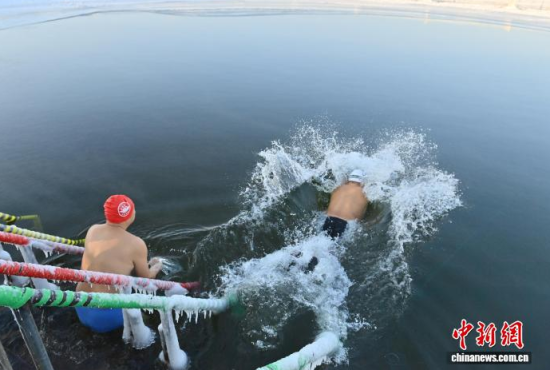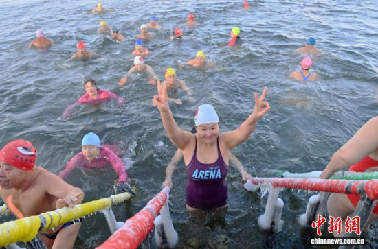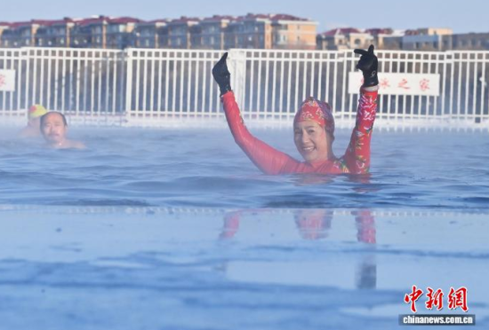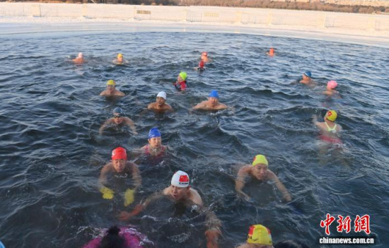 吉林長(zhǎng)春:冬泳愛好者冰湖暢游迎新年