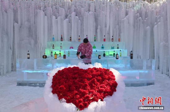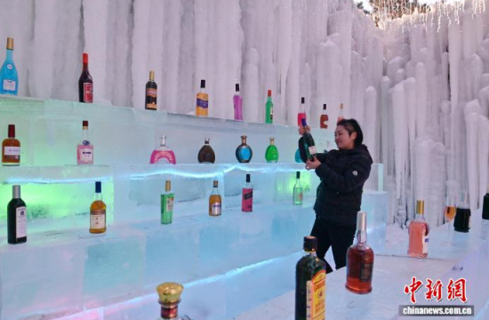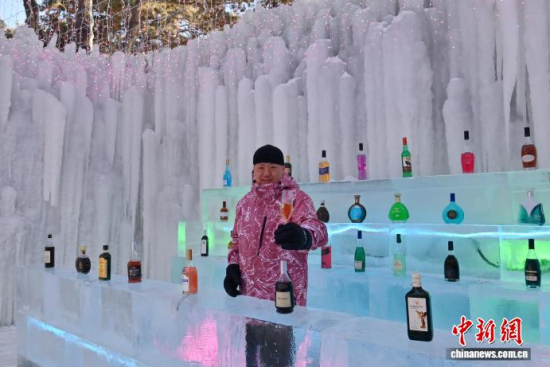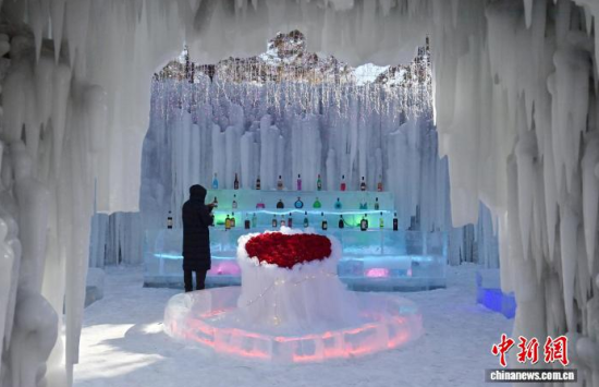 2月3日,位于長(zhǎng)春冰川幻境冰雪樂園內(nèi)的一座由冰瀑打造而成的特色“酒吧”,吸引了大量游客前來(lái)打卡體驗(yàn)。酒吧內(nèi)部以冰雪為主題,晶瑩剔透的冰沙發(fā)與冰吧臺(tái)相互映襯,營(yíng)造出夢(mèng)幻般的冰雪世界氛圍。中新社記者 張瑤 攝