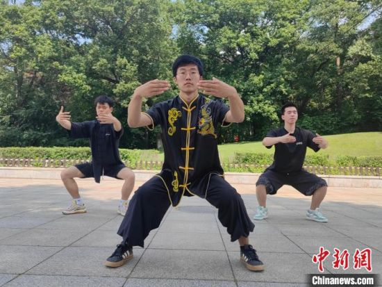 近日,康梓楗(中)和健身“搭子”用中式健身方法鍛煉!∈橛 攝