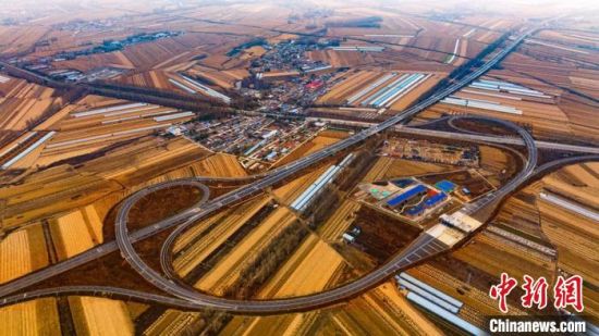 鳥(niǎo)瞰長(zhǎng)春都市圈環(huán)線(xiàn)高速公路東環(huán)二期項(xiàng)目。(資料圖) 吉林省交通運(yùn)輸廳供圖