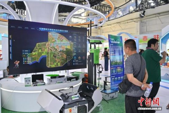 參觀者在參觀長(zhǎng)春國家農(nóng)高區(qū)未來農(nóng)場(chǎng)設(shè)計(jì)藍(lán)圖!埇 攝
