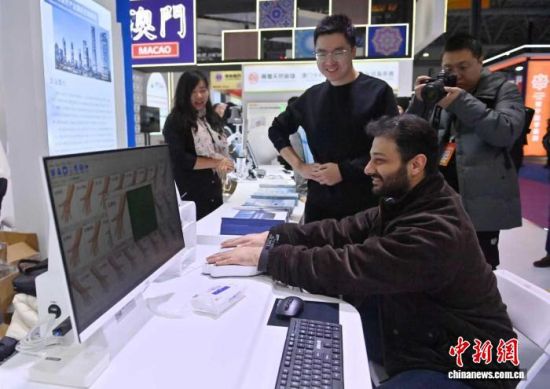 2025長春國際醫(yī)藥健康產業(yè)博覽會暨長白山人參產業(yè)高質量發(fā)展大會上,外國觀眾正在體驗中醫(yī)經絡檢測儀。張瑤 攝
