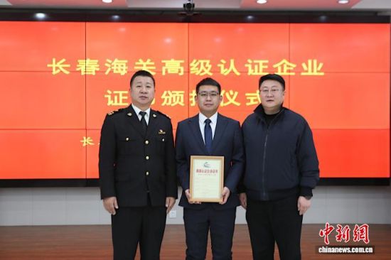 長春海關向企業(yè)頒授證書。(長春海關供圖)