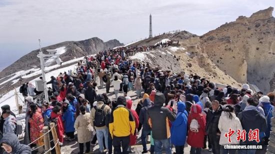 長白山景區(qū)春季客流高峰。(資料圖) 長白山管委會旅游和文化體育局供圖